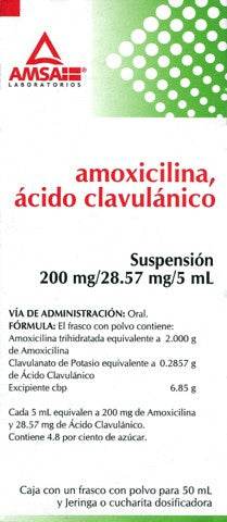 Categoría Antibióticos Línea Amoxicilina/Clavulanato Marca Amsa Molécula Amoxicilina y Clavulanato de Potasio Presentación Suspensión 200 mg/2...
