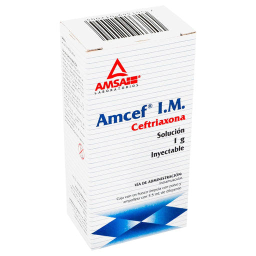 Categoría Antibióticos Línea Antibióticos de amplio espectro Marca Amcef Molécula Ceftriaxona Presentación Ampulas de 1 g Laboratorio Amsa I...