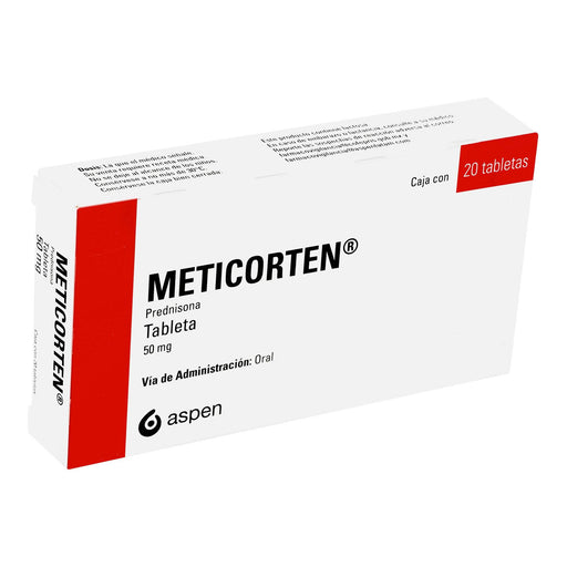 Categoría Medicamento Línea Antiinflamatorios Marca Meticorten Molécula Prednisona Presentación 50 Mg con 20 tabletas Laboratorio Aspen Indi...