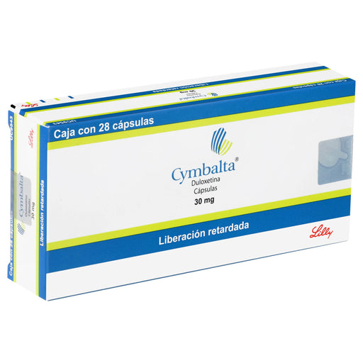 LillyCategoría Antidepresivos Línea Cymbalta Marca Lilly Molécula Duloxetina Presentación Cápsulas de 30 mg, 28 cápsulas por caja Laboratorio Lill...