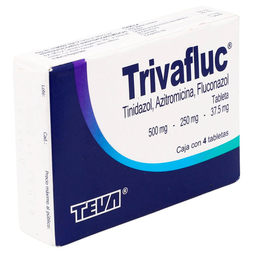 TevaCategoría Antibióticos Línea Trivafluc Marca Teva Molécula Tinidazol/Azitromicina/Fluconazol Presentación 4 Tabletas Laboratorio Teva Indica...