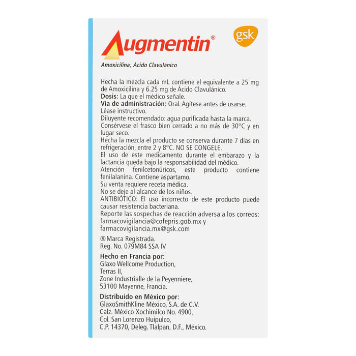 Augmentin Pediatrico Suspensión 125Mg/31.25Mg/5Ml 60Ml (Amoxicilina/Clavulanato)