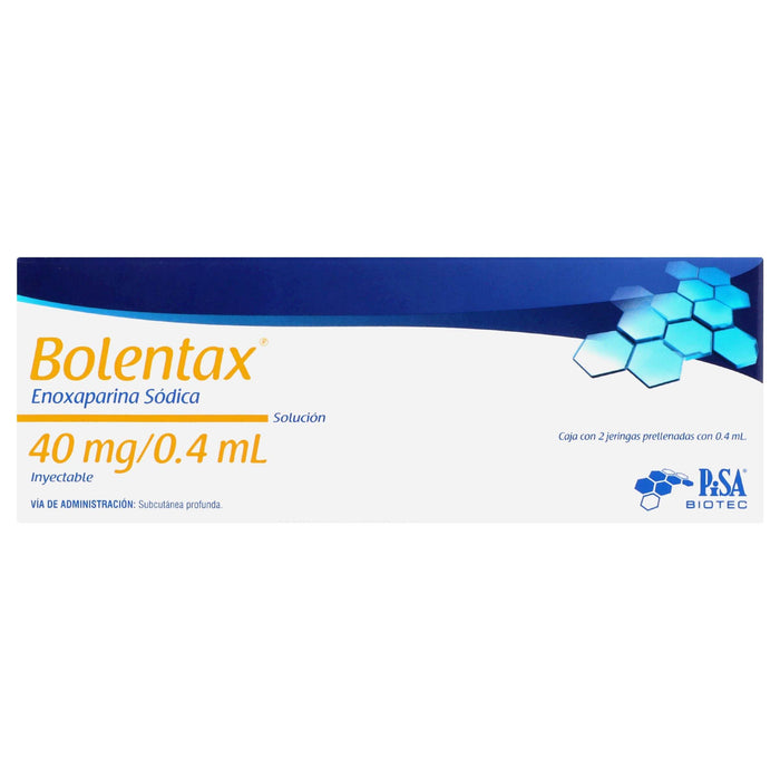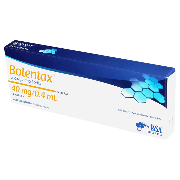 Bolentax Jeringa 40 mg (Enoxaparina Sódica) está indicado para la profilaxis y tratamiento de la trombosis venosa profunda (TVP) y la embolia pulmonar (EP) en pacientes quirúrgicos, así como para la prevención de complicaciones tromboembólicas en pacientes con inmovilización prolongada. También se usa en el tratamiento de pacientes con infarto agudo de miocardio y en la prevención de eventos tromboembólicos en pacientes con fibrilación auricular. Este medicamento actúa como un anticoagulante de bajo peso molecular, inhibiendo la activación de los factores de coagulación, lo que reduce el riesgo de formación de coágulos.