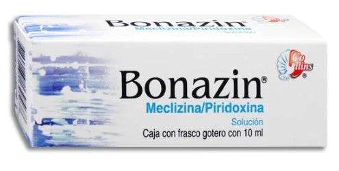 Cada mililitro de Bonazin contiene: Meclizina 8.33 mg y Piridoxina 16 mg.