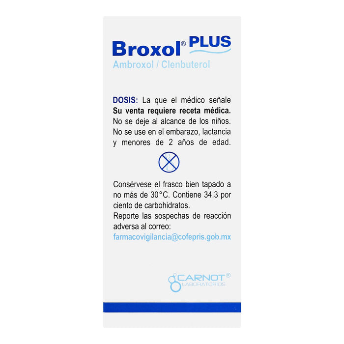 Se debe tener precaución en pacientes con antecedentes de enfermedad cardíaca, hipertensión o arritmias. El uso de Broxol Plus debe ser supervisado por un médico en pacientes con insuficiencia renal o hepática, así como en aquellos que están tomando otros medicamentos que puedan interactuar con Ambroxol o Clenbuterol. Es importante seguir las indicaciones del médico en cuanto a la dosis y duración del tratamiento.