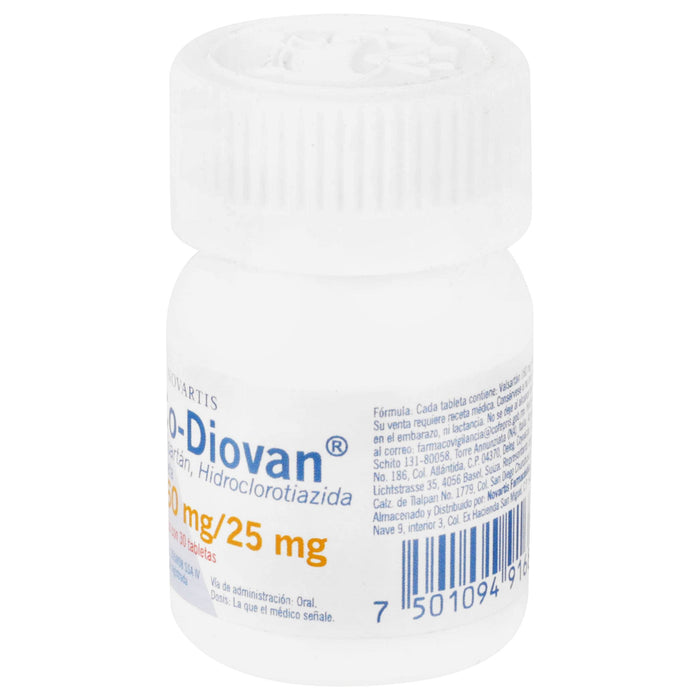 Cada tableta de Co-Diovan contiene 160 mg de valsartán y 25 mg de hidroclorotiazida.