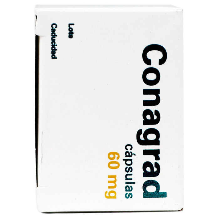 Conagrad está contraindicado en pacientes con hipersensibilidad a alguno de los componentes de la fórmula. También se debe evitar en individuos con síndrome de malabsorción crónica o colestasis, así como en mujeres embarazadas o en periodo de lactancia, debido a la falta de estudios adecuados en estas poblaciones.