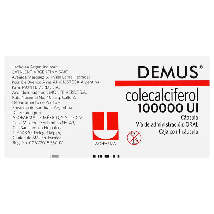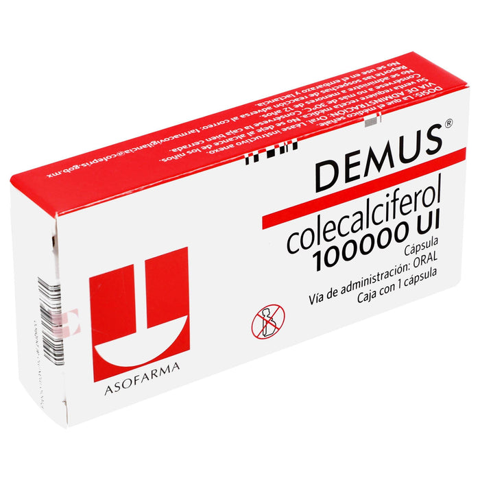 Cada cápsula de Demus contiene 100,000 unidades internacionales de colecalciferol.
