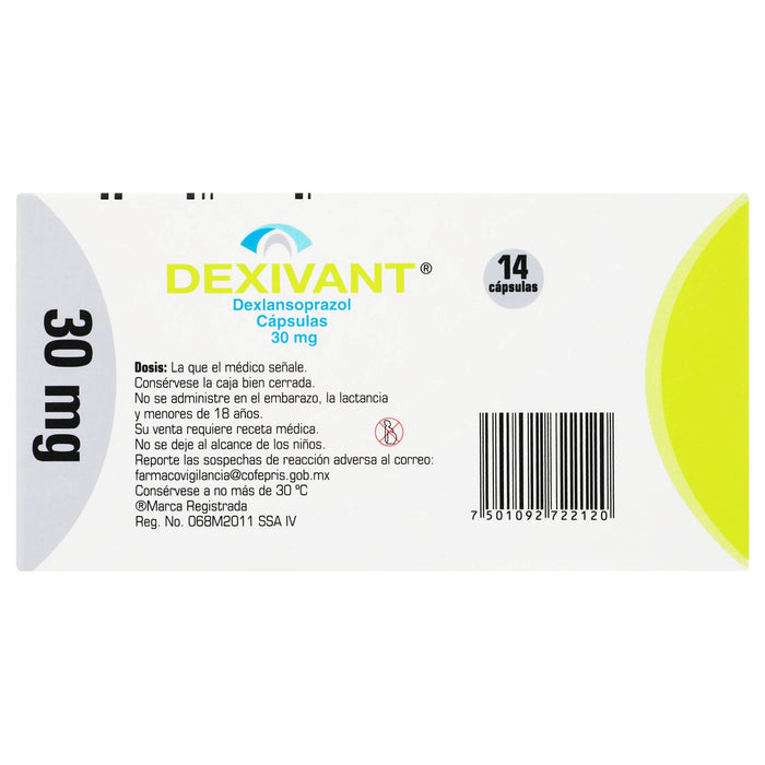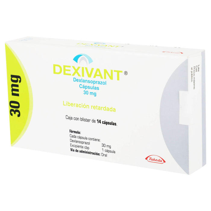 Cada cápsula de Dexivant contiene 30 mg de dexlansoprazol, así como excipientes que facilitan su formulación y absorción.