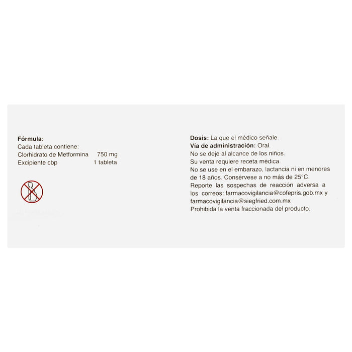 Cada tableta de Dimefor XR contiene 750 mg de metformina como principio activo. Además, contiene excipientes que permiten la formulación del medicamento, asegurando su estabilidad y liberación controlada.