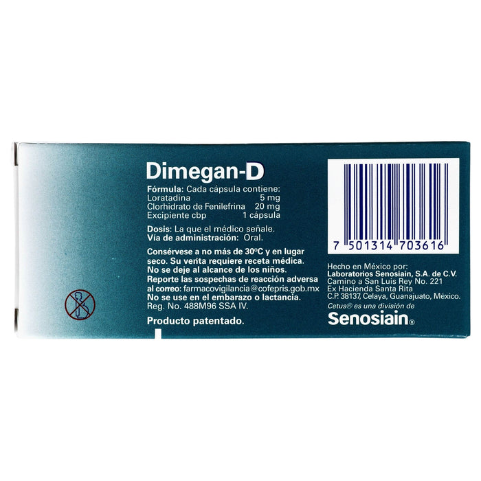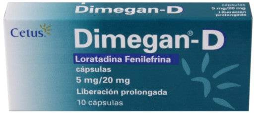 Dimegan D 5Mg/20Mg Con 10 Capsulas (Loratadina-Fenilefrina)