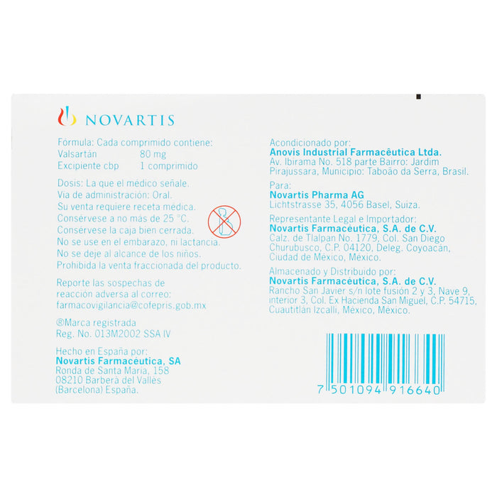 Diovan 80Mg Con 30 Comprimidos (Valsartan)