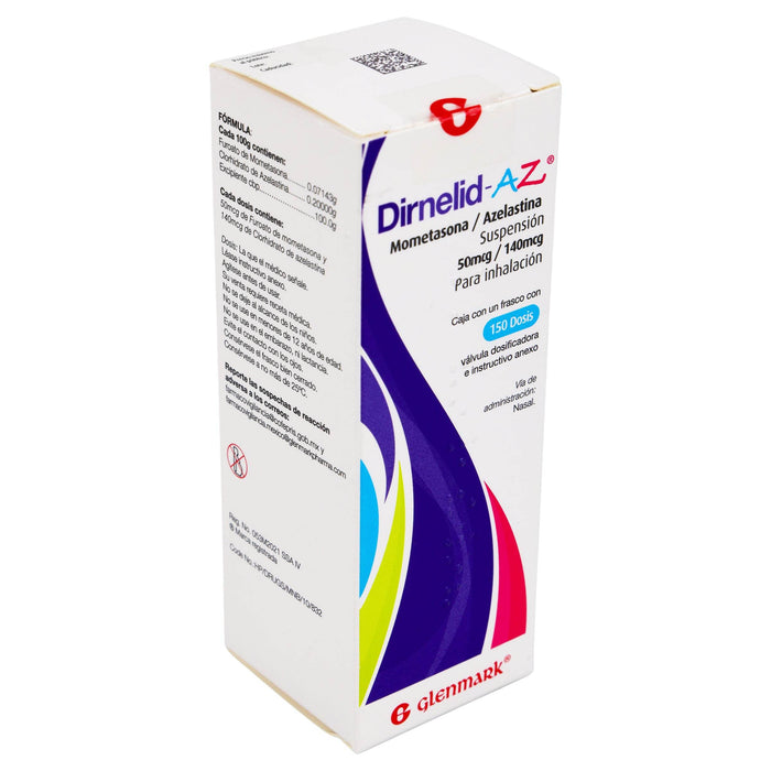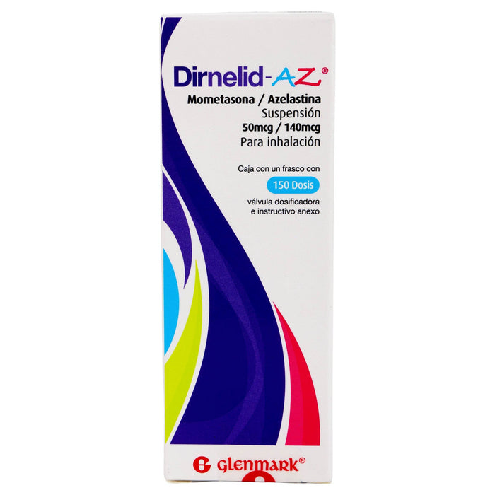 Dirnelid-Az Suspensión está indicado para el tratamiento de los síntomas nasales de la rinitis alérgica estacional y perenne, tales como congestión nasal, estornudos y rinorrea. La combinación de mometasona, un corticosteroide, y azelastina, un antihistamínico, actúa de manera sinérgica para aliviar la inflamación y la respuesta alérgica en las vías respiratorias superiores. Este medicamento es especialmente útil para pacientes que experimentan síntomas severos o que no han respondido adecuadamente a otros tratamientos. También puede ser utilizado en la profilaxis de los síntomas de rinitis alérgica en situaciones donde se anticipa la exposición a alérgenos.