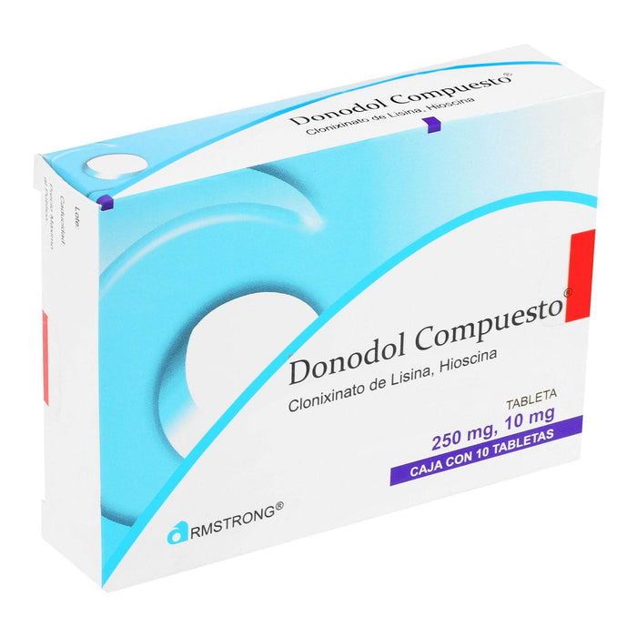 Cada tableta de Donodol Compuesto contiene: 250 mg de Clonixinato de Lisina y 10 mg de Hioscina.