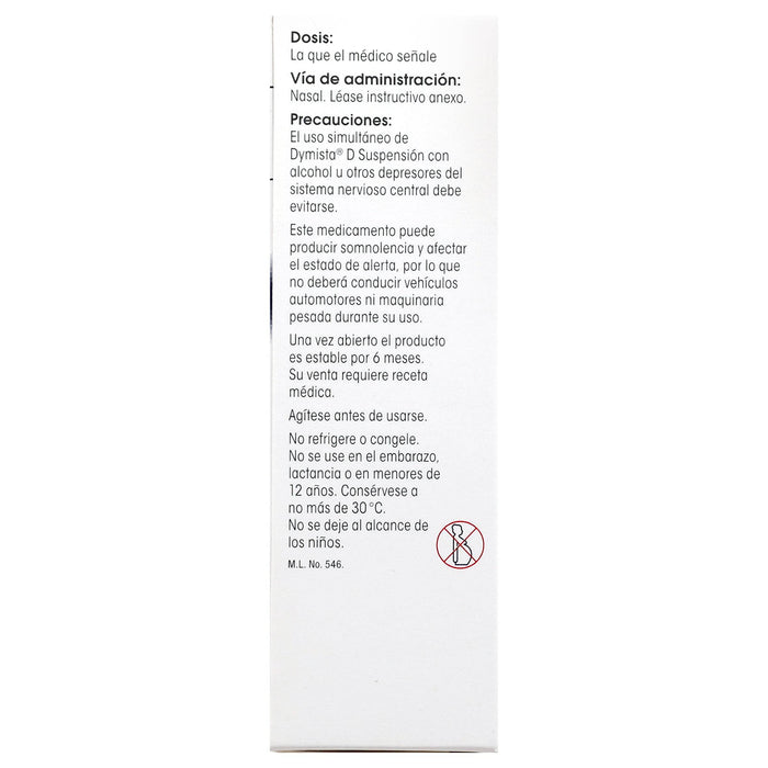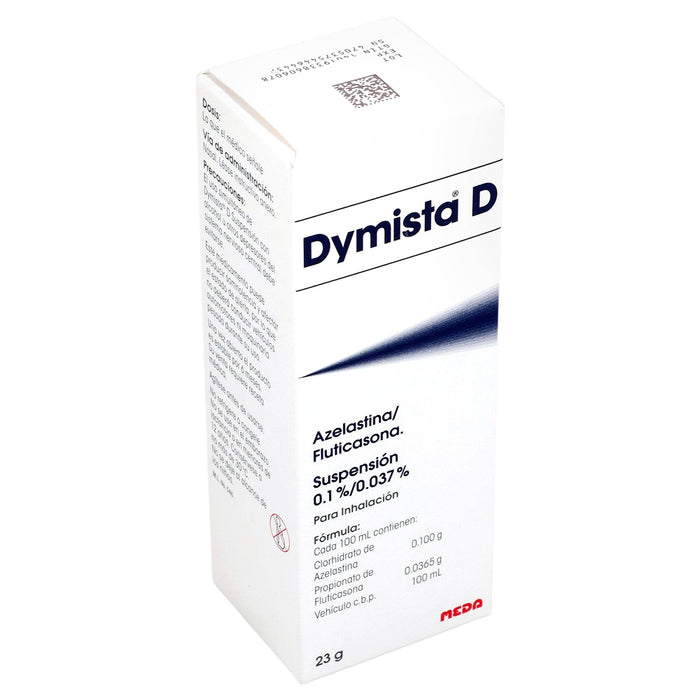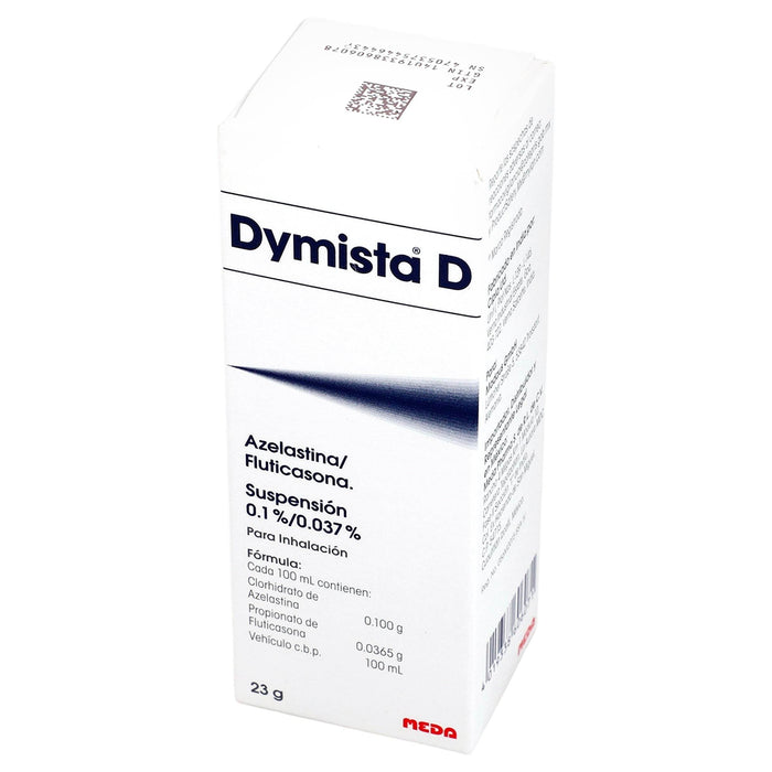 Dymista D está indicado para el tratamiento de síntomas nasales asociados con rinitis alérgica estacional y perenne en adultos y niños mayores de 12 años. Su formulación combina un antihistamínico (Azelastina) y un corticosteroide (Fluticasona), lo que proporciona un alivio rápido de los síntomas como la congestión nasal, estornudos, y secreción nasal. Es eficaz para reducir la inflamación y mejorar la calidad de vida de los pacientes que sufren de estas condiciones alérgicas. Además, este medicamento puede ser utilizado para el manejo de otras afecciones respiratorias según lo indique un médico. Es importante seguir las indicaciones del profesional de la salud para optimizar el tratamiento y garantizar su efectividad.