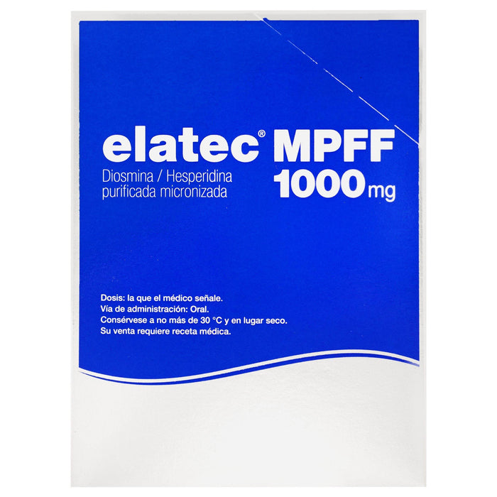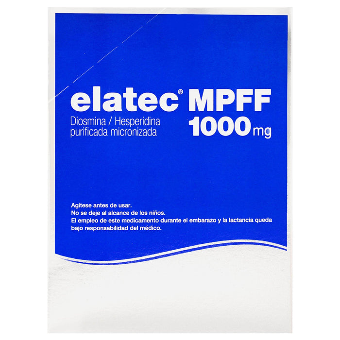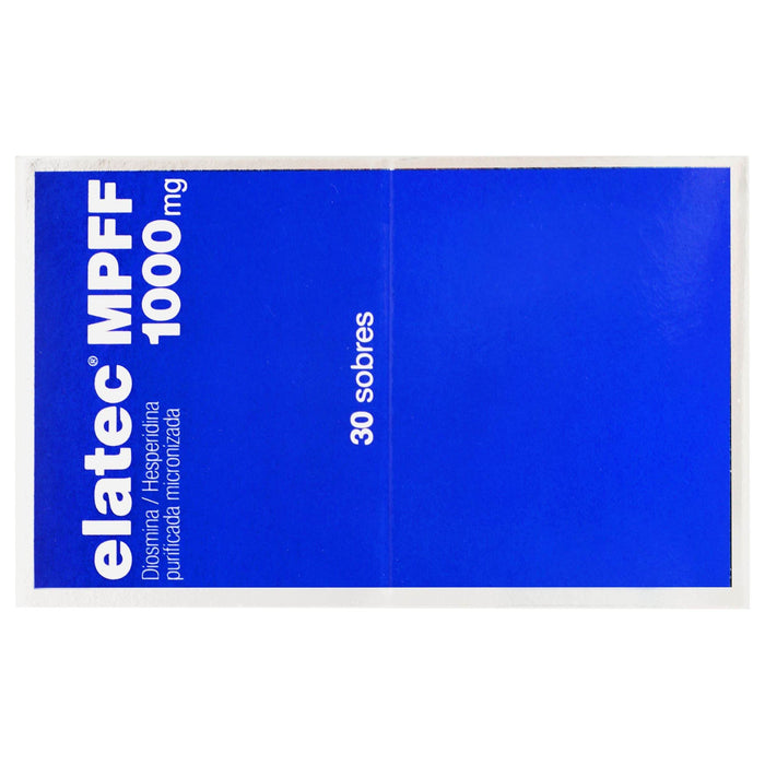 Cada sobre de Elatec Mpff contiene 1000 mg de Diosmina y 100 mg de Hesperidina.