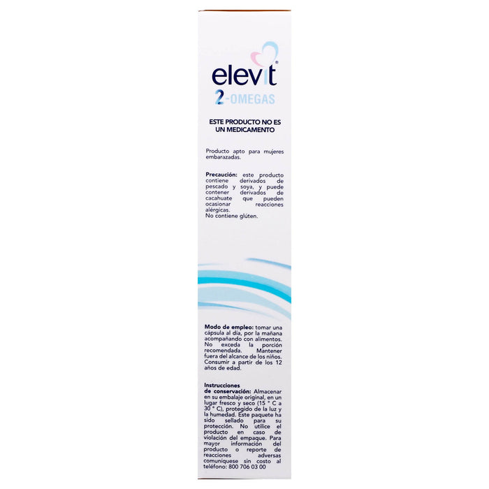 Elevit 2-Omegas está indicado como un complemento alimenticio diseñado para cubrir las necesidades nutricionales de mujeres en etapa de planeación del embarazo, embarazo y lactancia. Su formulación contiene una combinación de vitaminas y minerales esenciales que promueven la salud materno-fetal. Este producto es útil para ayudar a prevenir deficiencias nutricionales que pueden afectar la salud de la madre y el desarrollo del feto. Además, contiene ácidos grasos omega-3, que son cruciales para el desarrollo neurológico y visual del bebé.