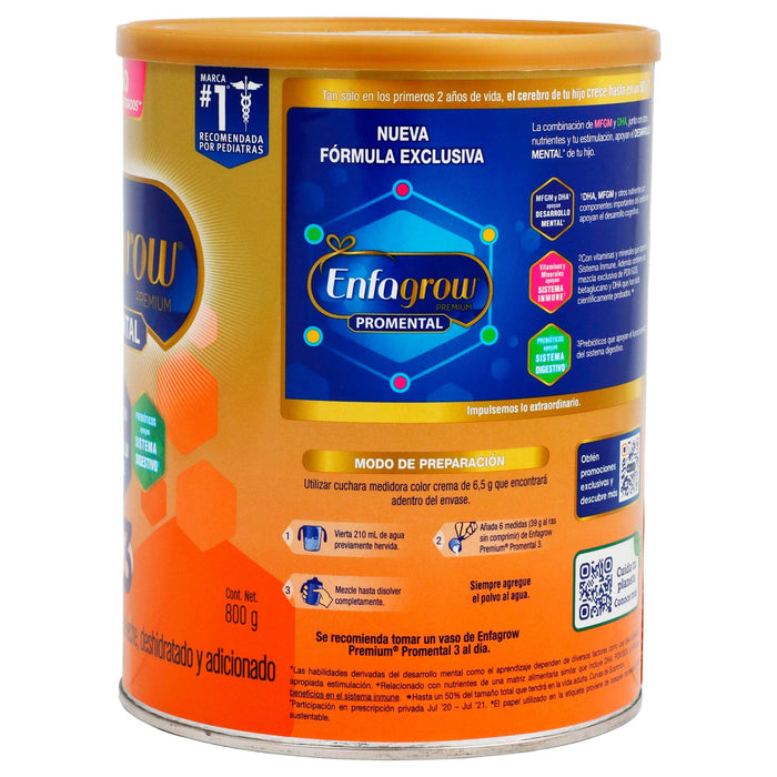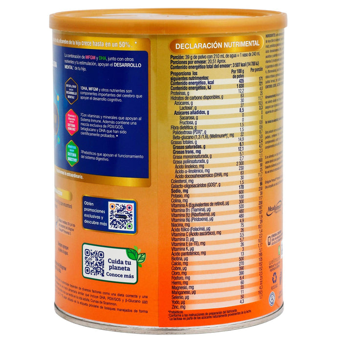 Enfagrow Proselect Premium Etapa 3 está indicado para niños a partir de 12 meses de edad que requieren un suplemento nutricional adicional. Este producto está diseñado para contribuir al crecimiento y desarrollo óptimo de los niños, ofreciendo una mezcla equilibrada de nutrientes esenciales que apoyan la función cognitiva y el desarrollo del sistema inmunológico. Además, contiene DHA y ARA, ácidos grasos que son importantes para el desarrollo del cerebro y los ojos. Se recomienda como parte de una alimentación balanceada y no debe ser la única fuente de nutrición para el niño.