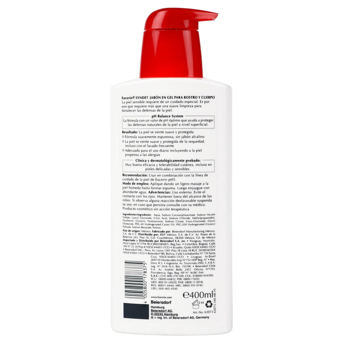 Eucerin Ph Syndet Gel 400Ml ofrece múltiples beneficios que lo convierten en un esencial en tu rutina de cuidado personal. Su pH equilibrado ayuda a mantener la barrera cutánea, evitando la sequedad y la irritación. Además, su fórmula libre de jabones y fragancias minimiza el riesgo de reacciones alérgicas, siendo ideal para las pieles más delicadas. Con cada uso, notarás cómo tu piel se siente limpia, suave y revitalizada, preparándola para enfrentar el día con energía.