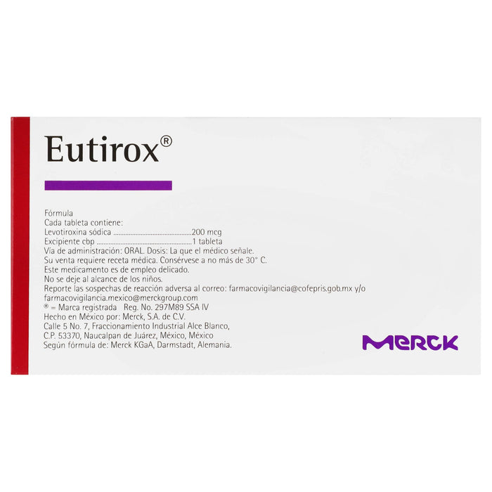 Eutirox 200Mcg Con 50 Tabletas (Levotiroxina Sodica)