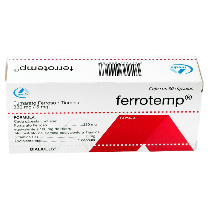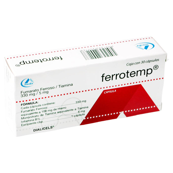 Ferrotemp 330Mg/5Mg Con 30 Capsulas (Fumarato Ferroso/Tiamina)