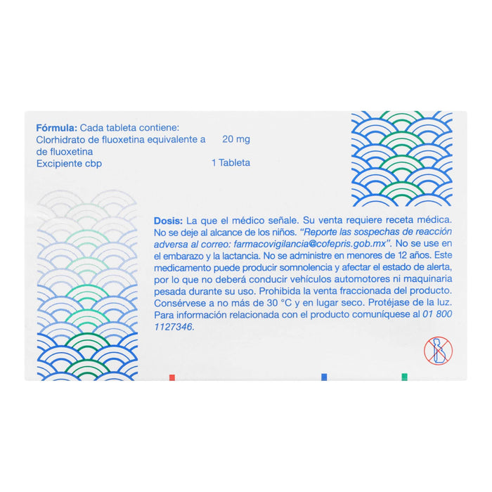 Cada tableta de Fluoxac contiene 20 mg de fluoxetina como principio activo, además de excipientes que facilitan su formulación y absorción.