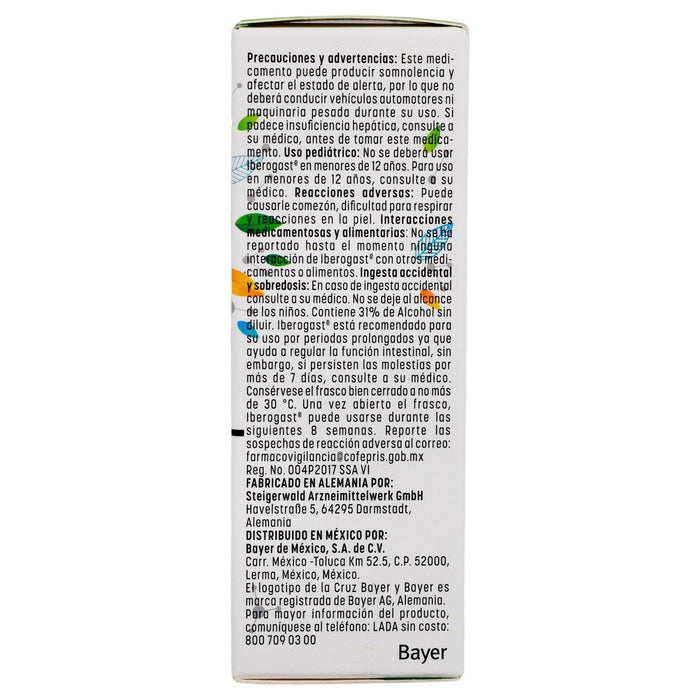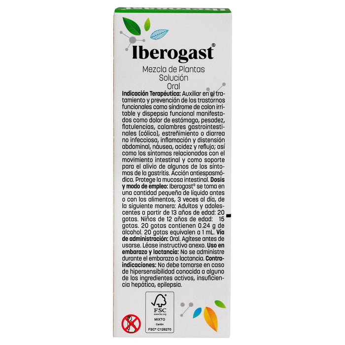 Iberogast está indicado para el tratamiento de síntomas gastrointestinales, incluyendo distensión abdominal, molestias o dolor en el estómago, y trastornos funcionales del tracto gastrointestinal. Este producto combina extractos de varias plantas medicinales que actúan sinérgicamente para promover el bienestar digestivo. Está indicado en casos de dispepsia, síndrome del intestino irritable y otros trastornos funcionales asociados a la digestión. La formulación de Iberogast ayuda a aliviar el malestar estomacal, la sensación de llenura y la acidez, favoreciendo la motilidad intestinal y la reducción de espasmos.