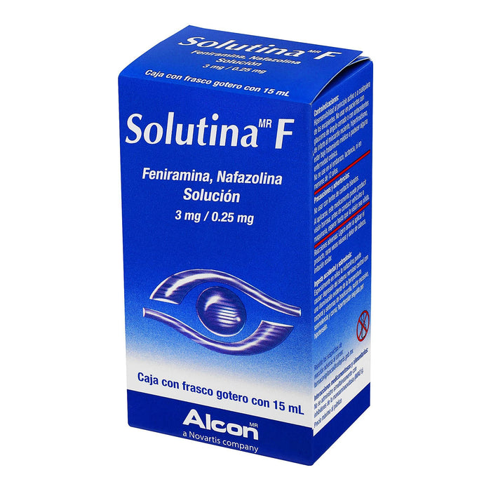 Solutina F está indicada para el tratamiento sintomático de la congestión nasal y ocular asociada a diversas condiciones, como rinitis alérgica y conjuntivitis alérgica. La combinación de feniramida, un antihistamínico, y nafazolina, un descongestionante, ayuda a aliviar los síntomas de picazón, enrojecimiento y lagrimeo en los ojos, así como la congestión nasal, proporcionando un alivio rápido y efectivo. Este medicamento está diseñado para su uso en adultos y niños mayores de 12 años, siempre bajo la supervisión de un médico.