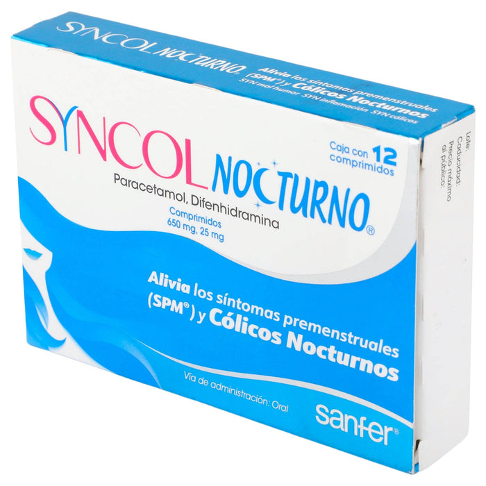 Syncol Nocturno 650Mg/25Mg Con 12 Comprimidos (Paracetamol/Difenhidramina)