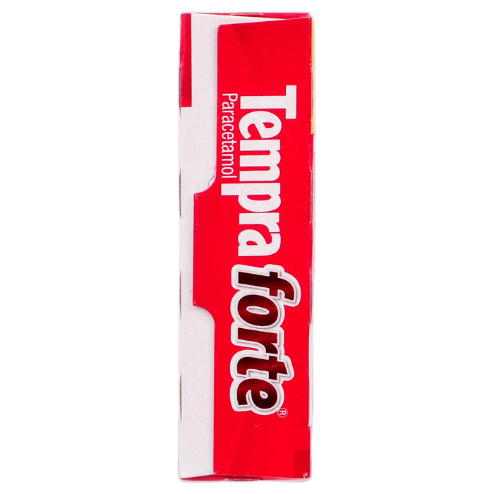 Tempra Forte está contraindicado en pacientes con hipersensibilidad al paracetamol o a cualquiera de los excipientes de la formulación. No debe administrarse en casos de insuficiencia hepática severa, así como en pacientes con enfermedad hepática activa.