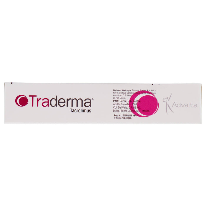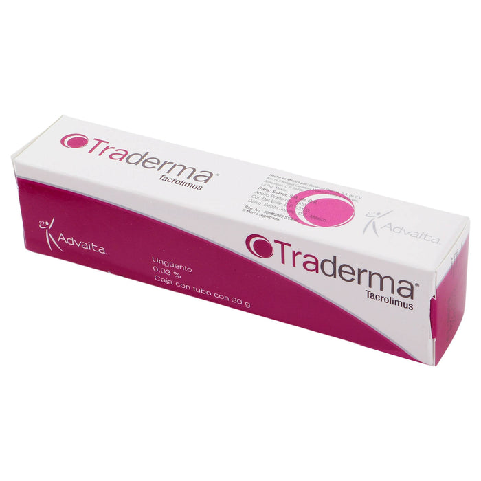 Traderma Ung 0.03% está indicado en el tratamiento de dermatitis atópica moderada a grave en pacientes que no han respondido adecuadamente a terapias tópicas convencionales, o en aquellos que requieren tratamiento a largo plazo. Este medicamento actúa como un inmunomodulador que ayuda a reducir la inflamación y la picazón asociadas con la dermatitis, promoviendo la curación de la piel afectada. Su uso es adecuado en adultos y en niños mayores de 2 años. Este medicamento no debe ser utilizado en lesiones infectadas o en áreas de la piel que presenten alteraciones graves.