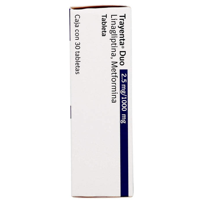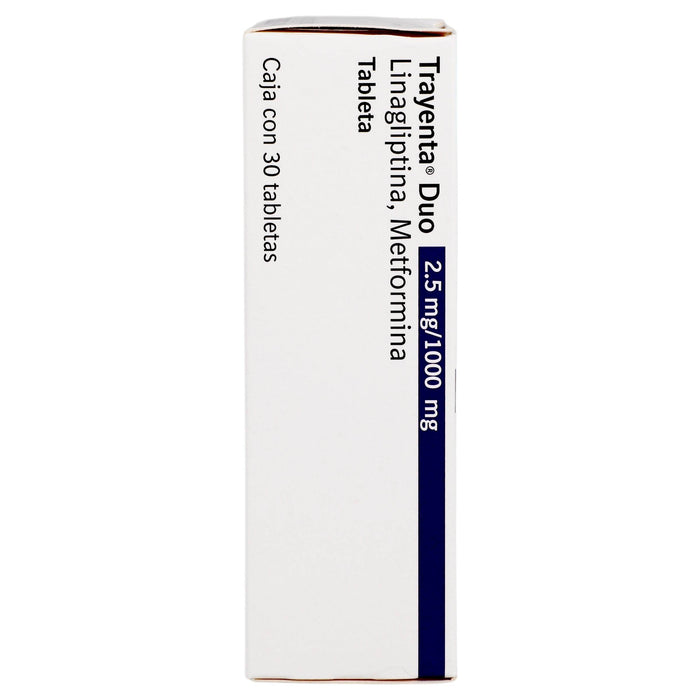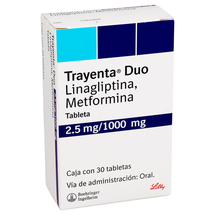 Cada tableta de Trayenta Duo contiene 2.5 mg de linagliptina y 1000 mg de metformina.