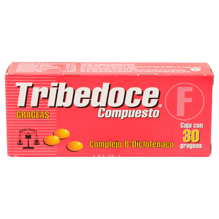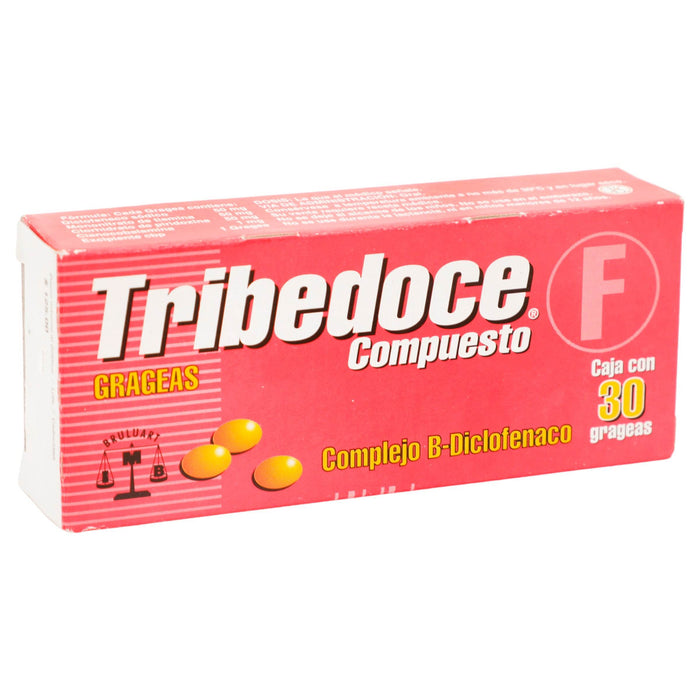 Cada gragea de Tribedoce Compuesto contiene: 50 mg de Diclofenaco, y un complejo de vitaminas del grupo B que incluye B1 (Tiamina), B6 (Piridoxina), y B12 (Cianocobalamina).