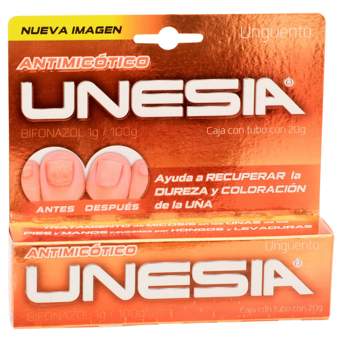 Cada 100 gramos de Unesia Ung contiene: Bifonazol 1 g. Excipientes: Vaselina, parafina líquida, lanolina, entre otros.