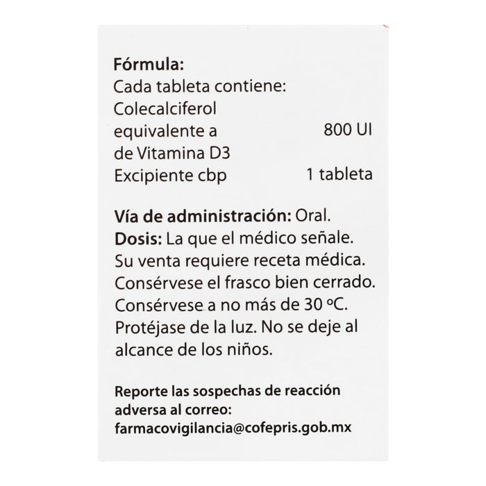 Cada tableta de Valmetrol-3 contiene 800 UI de Colecalciferol, además de excipientes que contribuyen a la formulación del producto.