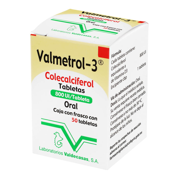 Valmetrol-3 800Unid Con 50 Tabletas (Colecalciferol)