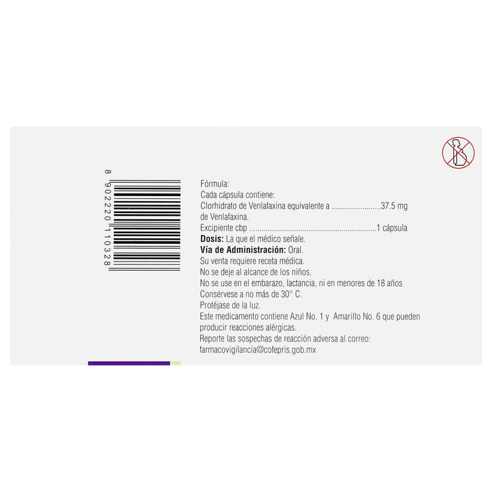 Cada cápsula contiene 37.5 mg de Venlafaxina como clorhidrato.