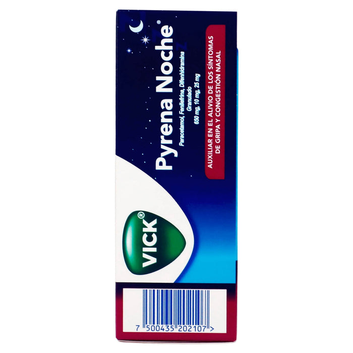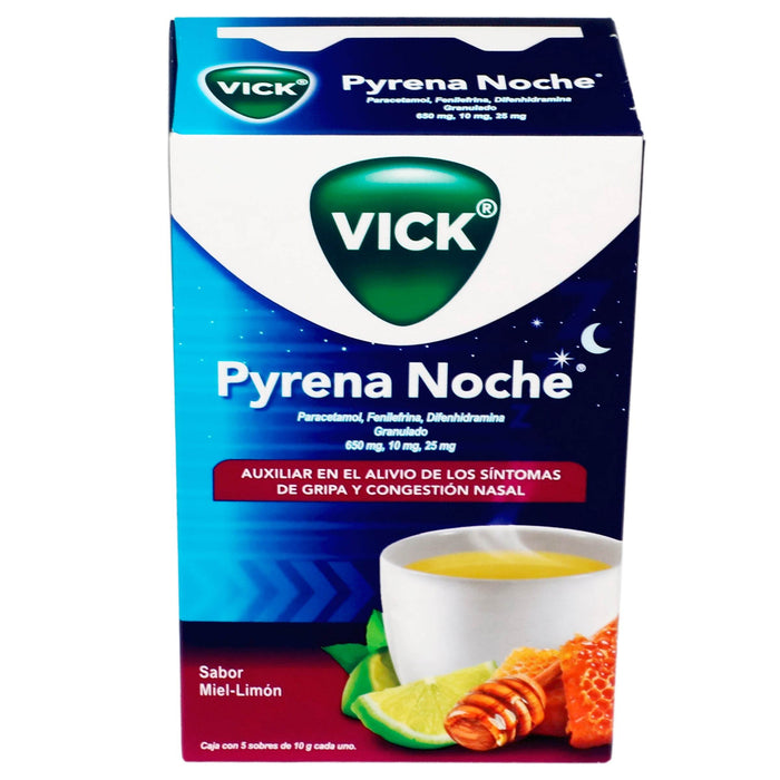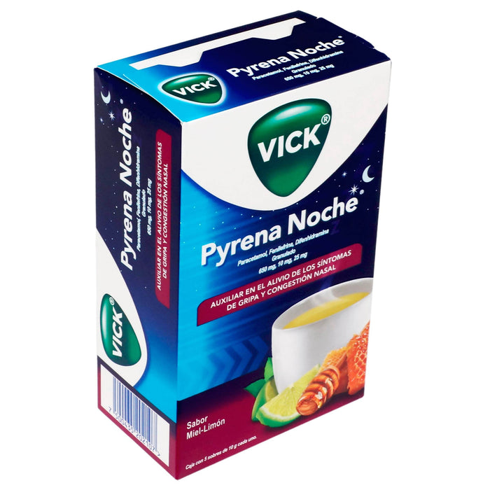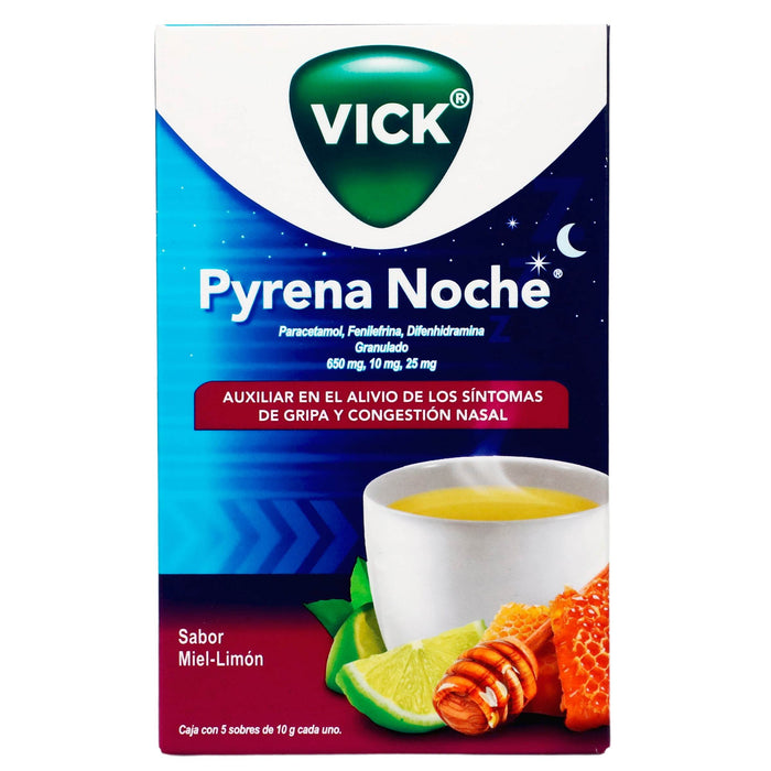 Vick Pyrena Noche Sobres 650Mg/10Mg/25Mg 10G Con 5 (Paracetamol/Fenilefrina/Difenhidramina)