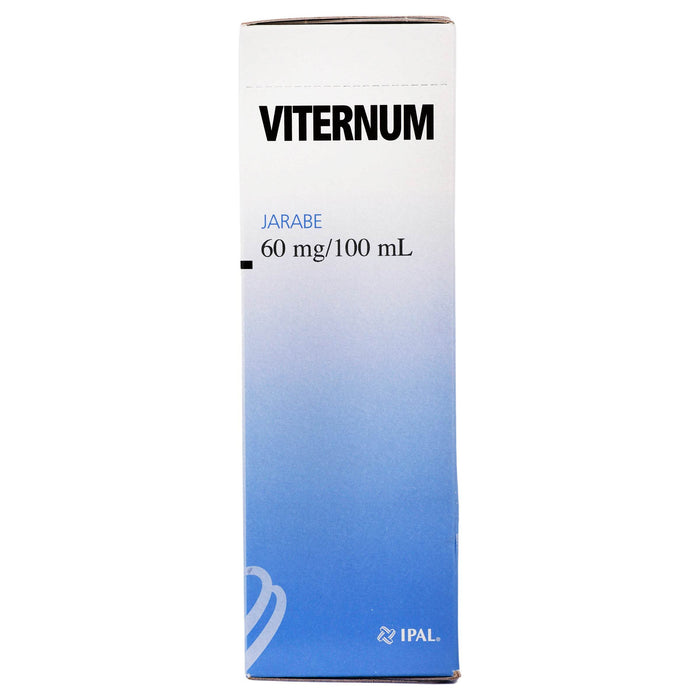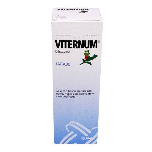 Se debe tener precaución en el uso de Viternum Jarabe en pacientes con enfermedades hepáticas, renales o que estén bajo tratamiento con otros fármacos que puedan interactuar con dihexazin. Se recomienda evitar actividades que requieran concentración, como conducir, ya que este medicamento puede causar somnolencia. Es importante consultar a un médico antes de iniciar el tratamiento si se está embarazada o en periodo de lactancia.