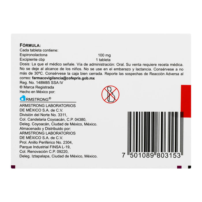 La espironolactona está contraindicada en pacientes con hipersensibilidad conocida a la espironolactona o a cualquiera de los excipientes de la formulación. No se debe administrar a personas con insuficiencia renal aguda o enfermedad renal que produzca oliguria, así como en aquellos con niveles elevados de potasio en suero (hiperpotasemia). También está contraindicada en el embarazo y la lactancia, salvo indicación médica específica.