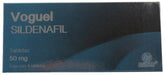 Cada tableta de Voguel 50 mg contiene 50 mg de Sildenafil como principio activo. Los excipientes y componentes inactivos pueden variar, y es recomendable revisar el empaque o la información específica del producto para obtener detalles precisos sobre la composición.